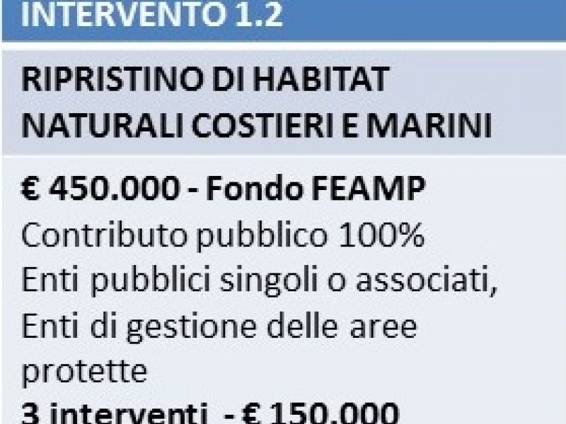 Intervento 1.2 - Ripristino di habitat naturali costieri e marini